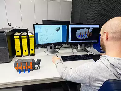 Ravebo has well-equipped workshops in which construction, welding and assembly work takes place for custom-made process installations and small series systems. Custom-made installations are handled on a project basis, whereby our draftsmen-constructors can develop the 3D designs from the engineering department using Autodesk Inventor, in collaboration with the production department, into production drawings and can also perform stress analysis.