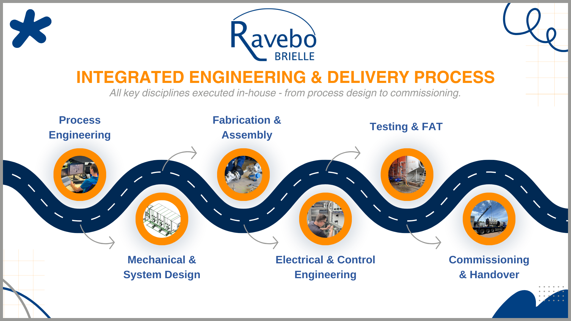 Ravebo provides single-point accountability for system performance, schedule adherence, and cost control, significantly reducing technical and contractual risk for the client. Upon project completion, Ravebo delivers as-built documentation, operation and maintenance manuals, operator training, and long-term technical support, ensuring reliable and compliant operation of the gas absorption scrubber system throughout its design life.